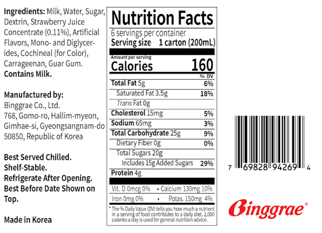 Binggrae Flavored Milk (Strawberry) 200ml