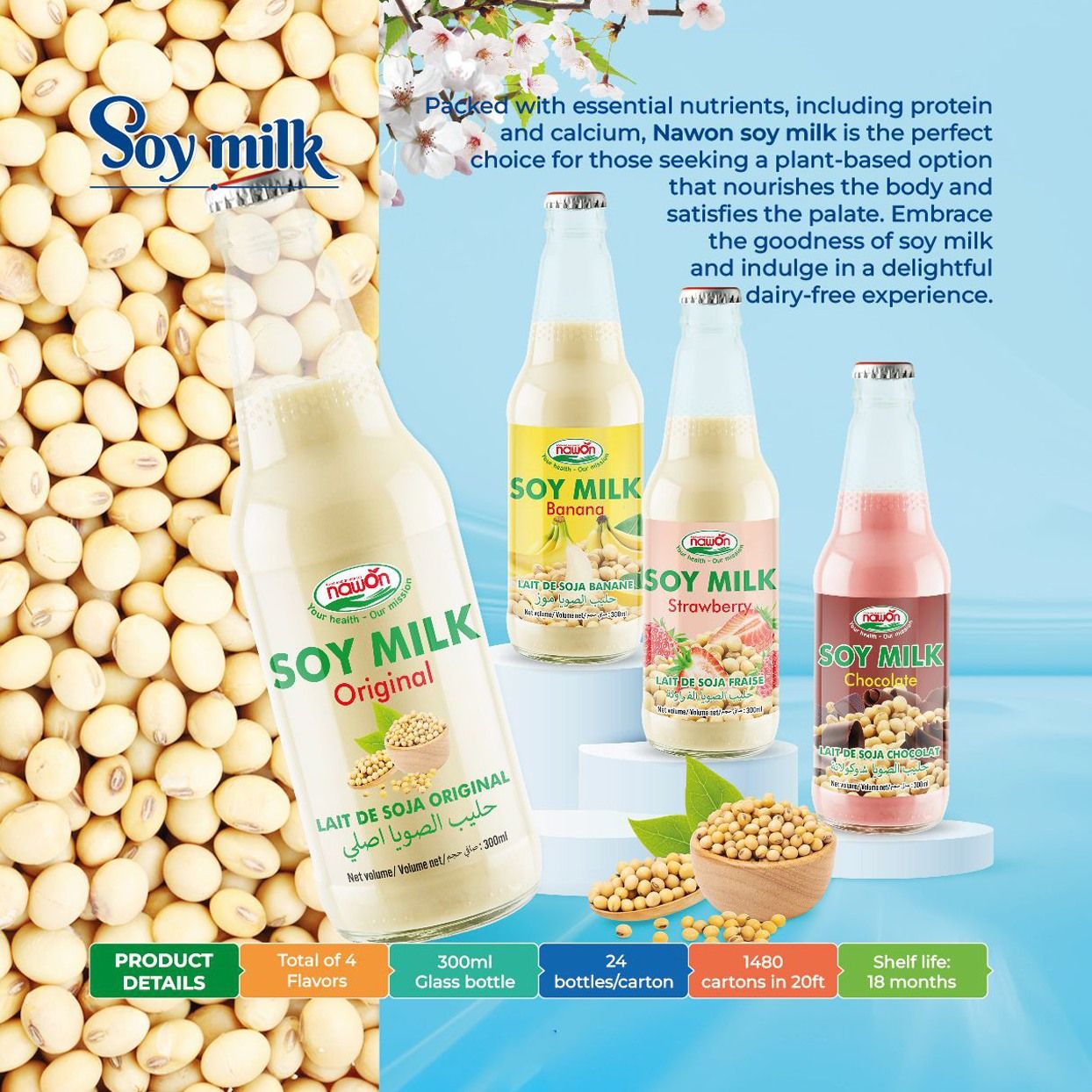 100% Natural Soy Milk 6 Flavour Drink 300ml Glass Bottle